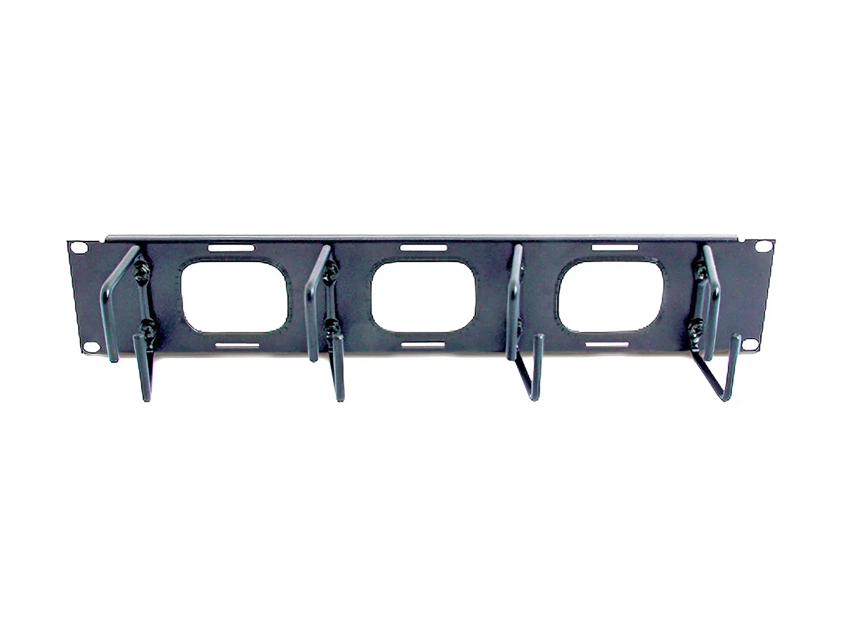 Erleichtert frontseitiges Kabelmanagement und ermöglicht das Durchführen von Kabeln zu Geräten an der Rückseite. Nimmt zwei Einheiten im Rack ein.