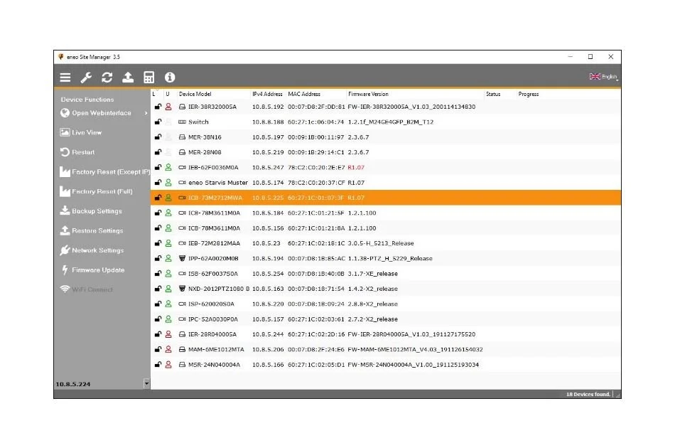 - Automatischer Scan & Verwaltung von eneo IP Produkten