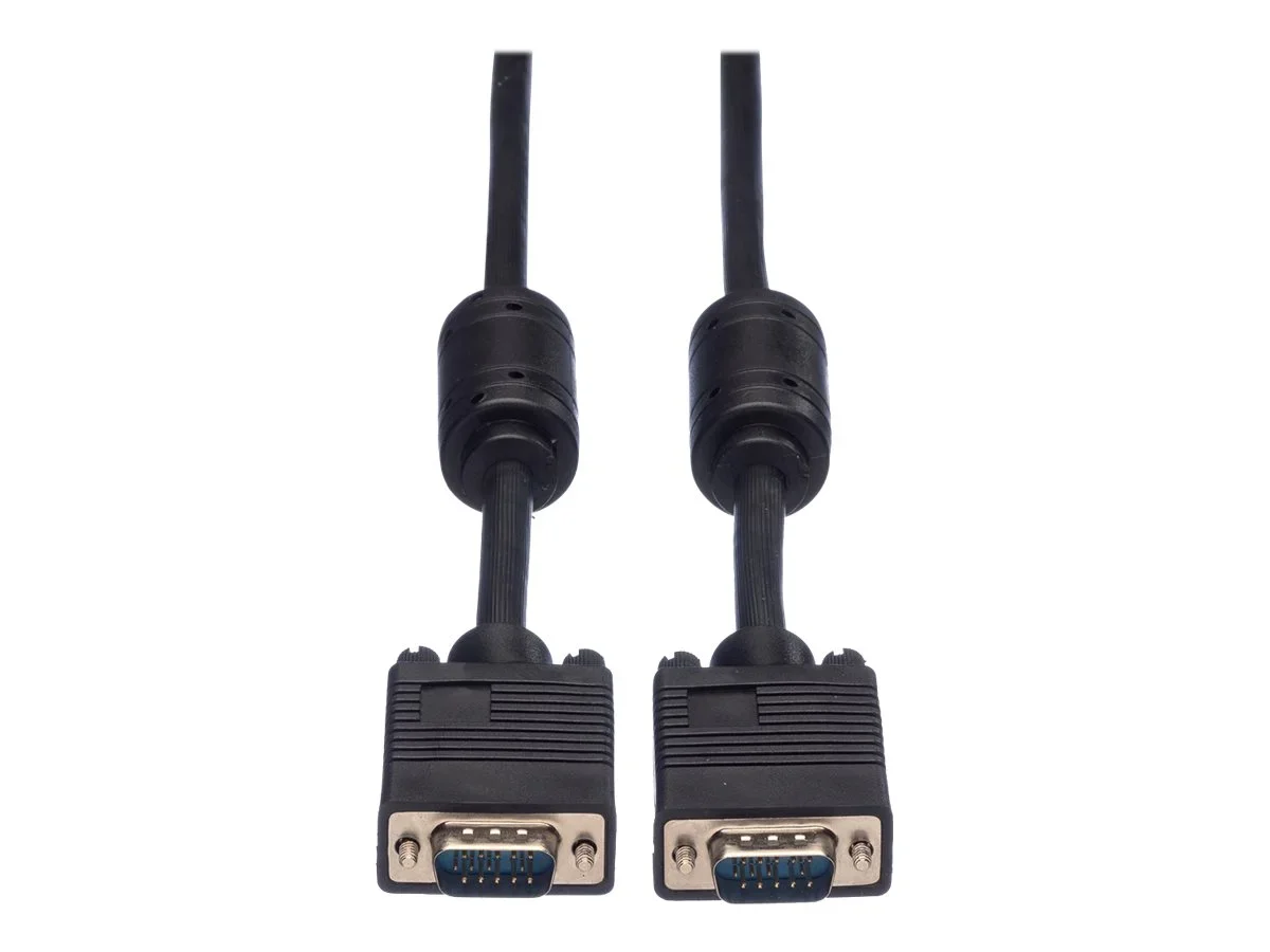 Hochwertiges Kabel zum Anschliessen eines VGA-Monitors an eine Grafikkarte 3 Koaxleitungen für die RGB- Signale und 7 AWG 28 Adern Mit zusätzlich 2 Ferritkernen, die die Störsicherheit steigern Steckergehäuse vergossen Doppelt geschirmtes Kabel (Geflecht und Folienschirm) HandverriegelungsschraubenROLINE VGA Kabel mit HD D-Sub-Steckern 15-polig für Videoübertragungen mit einer Auflösung von bis zu 1280×720 PixelDie Kabel der Marke ROLINE zeichnen sich durch hochwertige Materialqualität, solide Verarbeitung und passgenau gefertigte Steckkontakte aus. Der robuste und trotzdem flexible Kabelmantel aus PVC in schwarz schützt effektiv vor Beschädigungen und Kabelbruch. Die Stecker des Kabels sind 100% passgenau und sitzen fest in der Buchse des Anschlussgerätes. Die Steckverbindung wird durch die Handverriegelungsschrauben zusätzlich gesichert.Das ROLINE VGA-Kabel überträgt Videosignale flüssig und störungsfrei. Das Verbindungskabel mit HD D-Sub-Steckern eignet sich beispielsweise als Verbindungskabel zwischen Computer, Laptop oder Grafikkarte und einem Anzeigegerät wir Monitor, Beamer oder Fernseher. Die äußerst strapazierfähige Kabel-Ummantelung ist doppelt geschirmt und zusätzlich mit zwei Ferritkernen versehen, was der Reduzierung von elektromagnetischen Störeinflüssen dient.